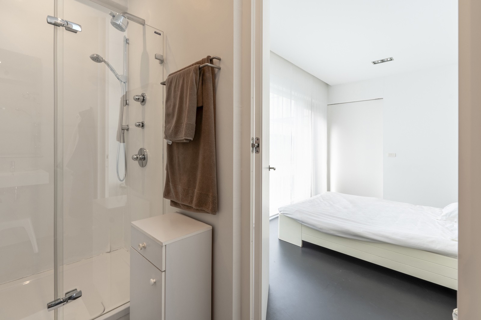 With numerous storage options thanks to the large built-in closets, this property offers not only luxury and comfort, but also functionality and style in the heart of Antwerp. Two car parking spaces can add to your comfort for the price of 30,000 euros per space.