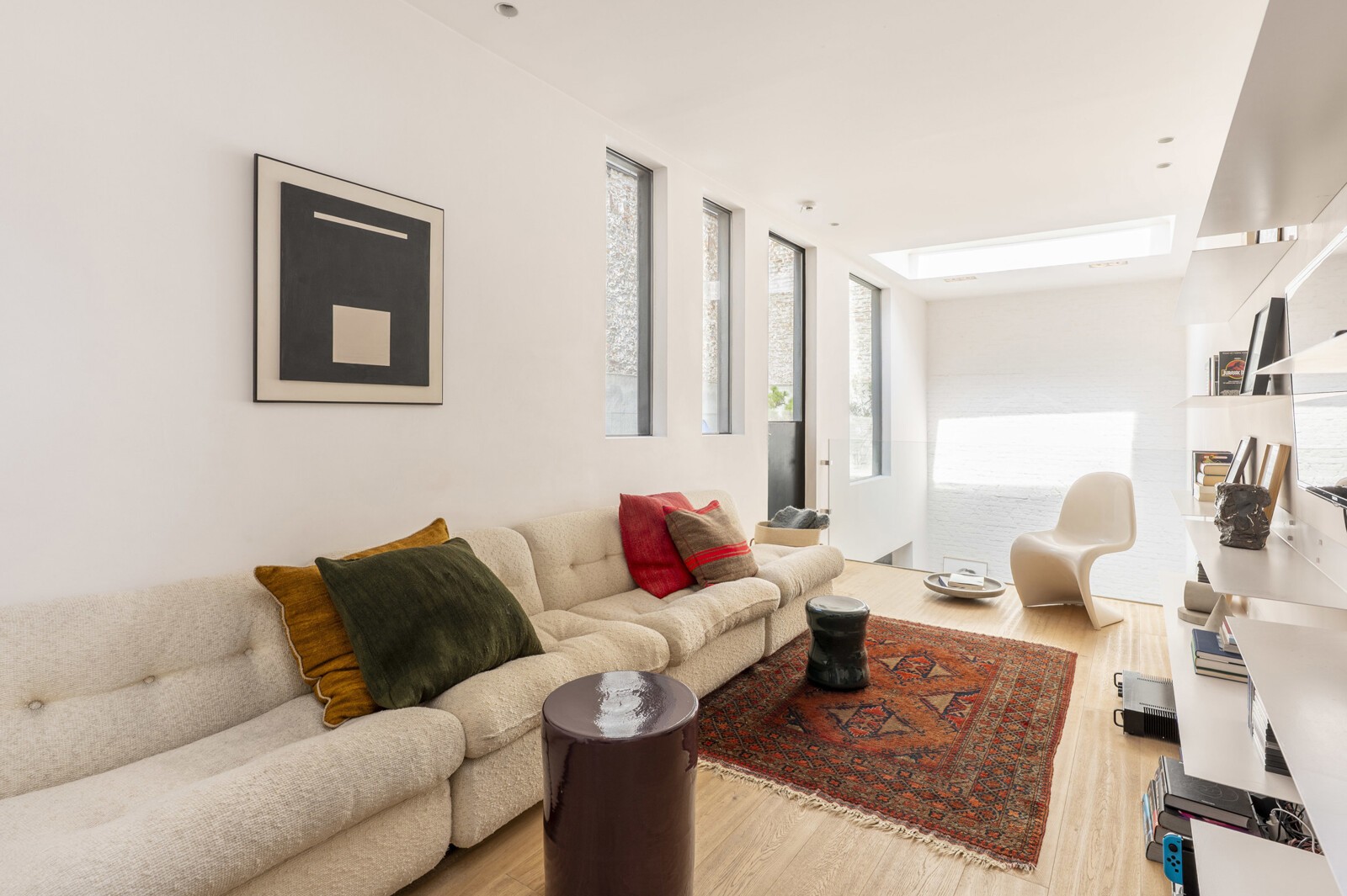 The living areas are bathed in natural light thanks to high ceilings and expansive windows, while refined materials and finishes add a warm, timeless atmosphere. With three spacious bedrooms and two bathrooms, the home provides generous comfort for families or those seeking stylish urban living.