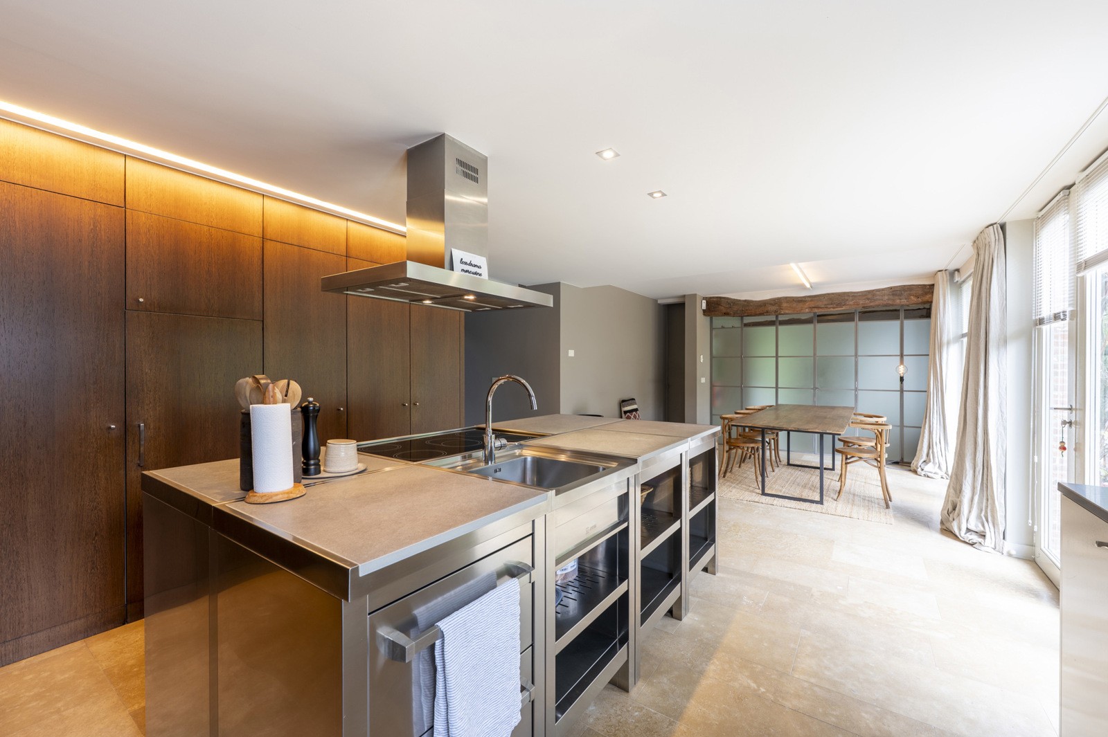 You reach this characterful home via a driveway, which has been renovated with great care and respect for its historical character. Authentic elements have been preserved and harmoniously combined with modern interventions, such as large glass facades that provide an abundance of natural light and a strong sense of space.