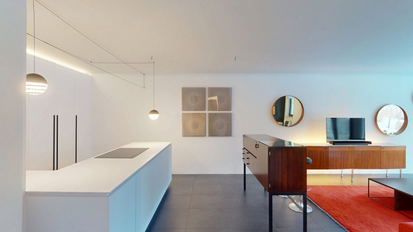 We betreden het appartement op de eerste verdieping via de ruime inkomhal op tegels. Dit appartement telt een apart toilet met handenwasser, een ruime slaapkamer (dewelke orginieel 2 slaapkamers waren), badkamer met dubbele lavabo, inloopdouche en een ruime berging met aansluiting voor wasmachine en droogkast, een ruime leefruimte met aansluitend een open keuken voorzien van alle hedendaags comfort en uitgerust met oa. een combi oven, stoomoven, vaatwasmachine etc. Aansluitend aan de leefruimte bevindt zich een royaal terras dat uitkijkt op het groen.