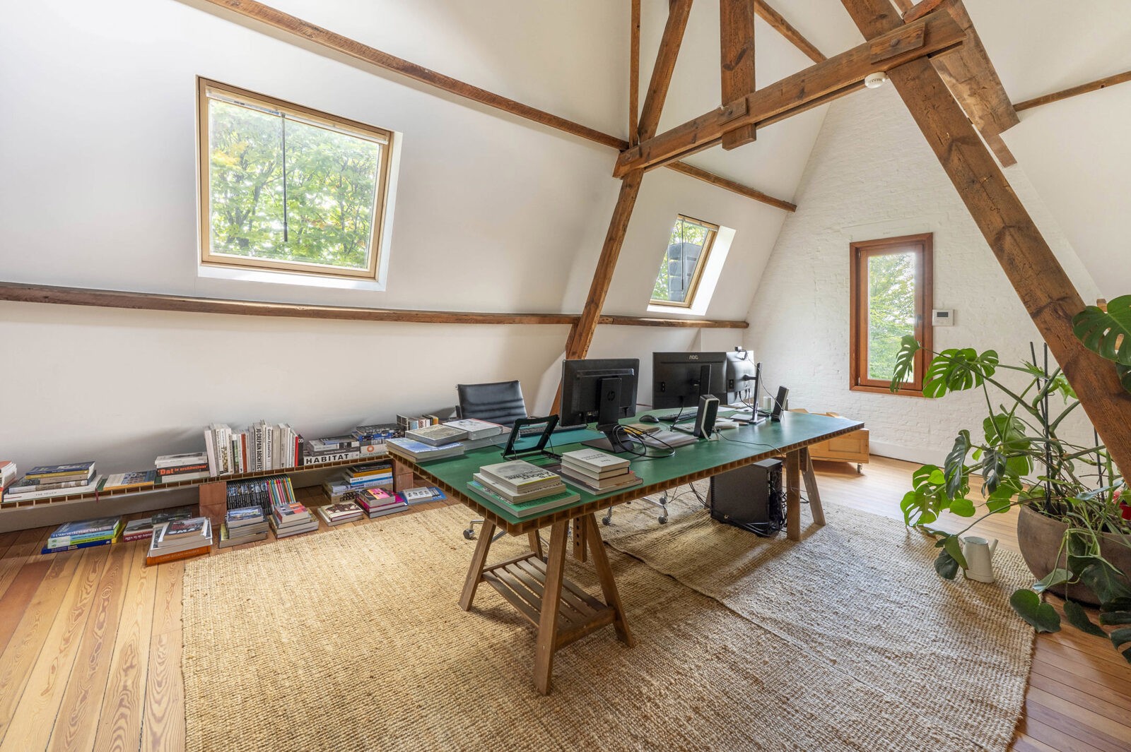 Momenteel is het gelijkvloers ingericht als kantoorruimte, wat deze woning ideaal maakt voor wie wonen en werken wil combineren. De verdiepingen herbergen vier ruime slaapkamers en twee badkamers, perfect voor een groot gezin of voor wie extra ruimte zoekt voor hobby’s of gasten.