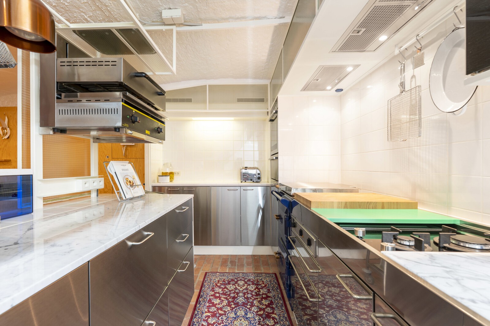 De woonruimte is sfeervol ingericht, met een gezellige open haard en een professionele keuken – perfect voor diners of kleine feestjes. Er is ook een kitchenette aanwezig, handig bij multifunctioneel gebruik van de ruimte.