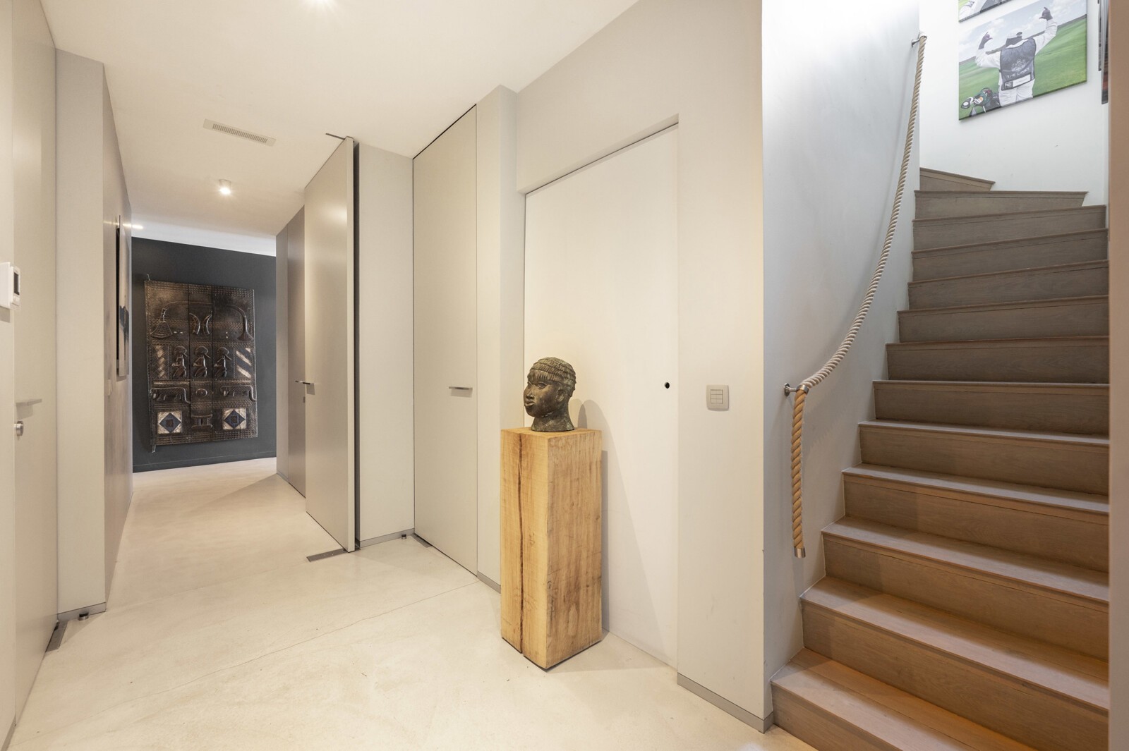 Extra comfort wordt geboden door Sonos-installatie, warmteluchtverwarming met koeling en bijkomende bergingen achter plafondhoge deuren.