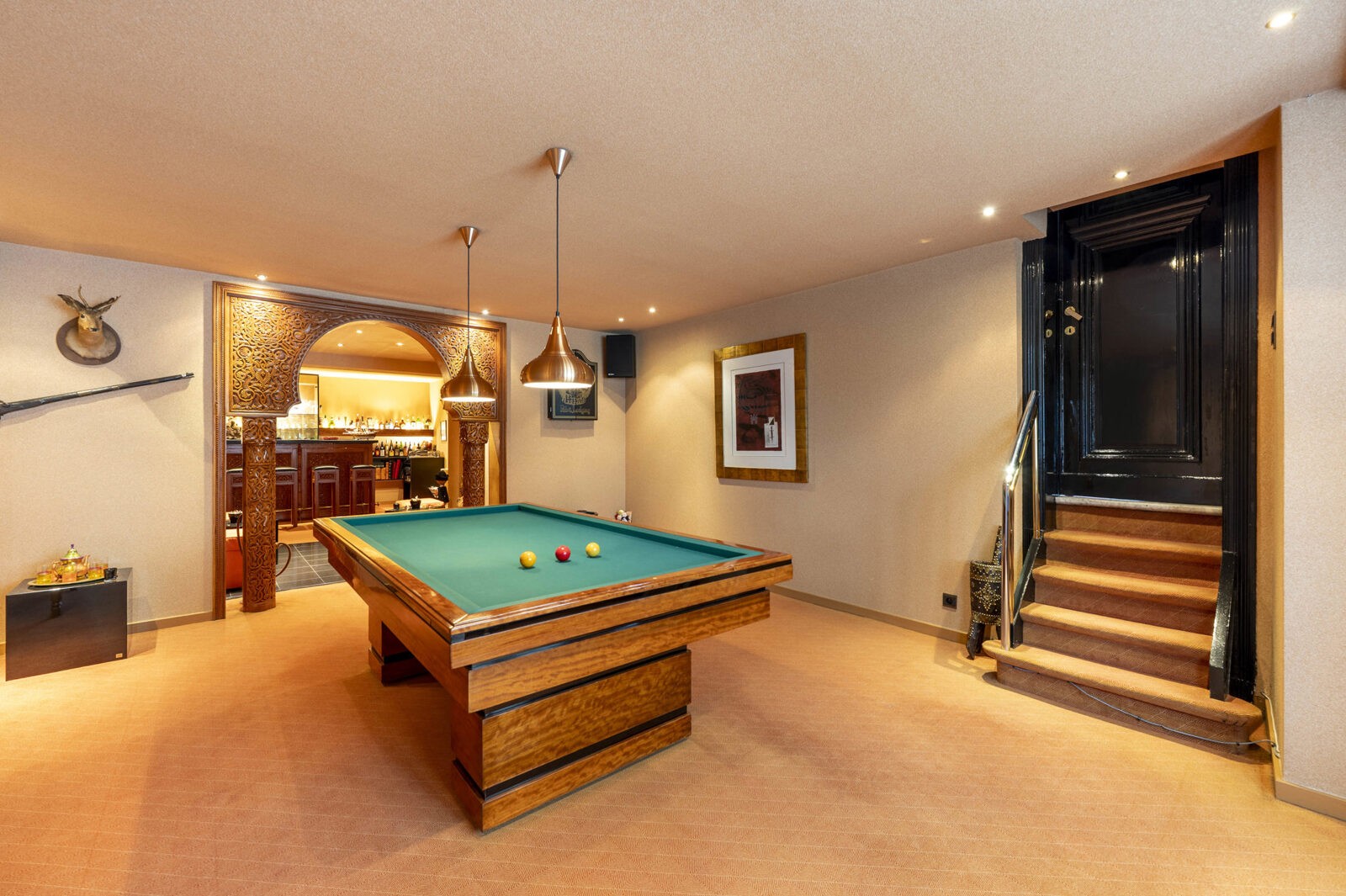De sous-terrain biedt een ontspanningsruimte met bar, fitnessruimte en wijnkelder. De technische berging en wasplaats bevinden zich eveneens op deze verdieping.