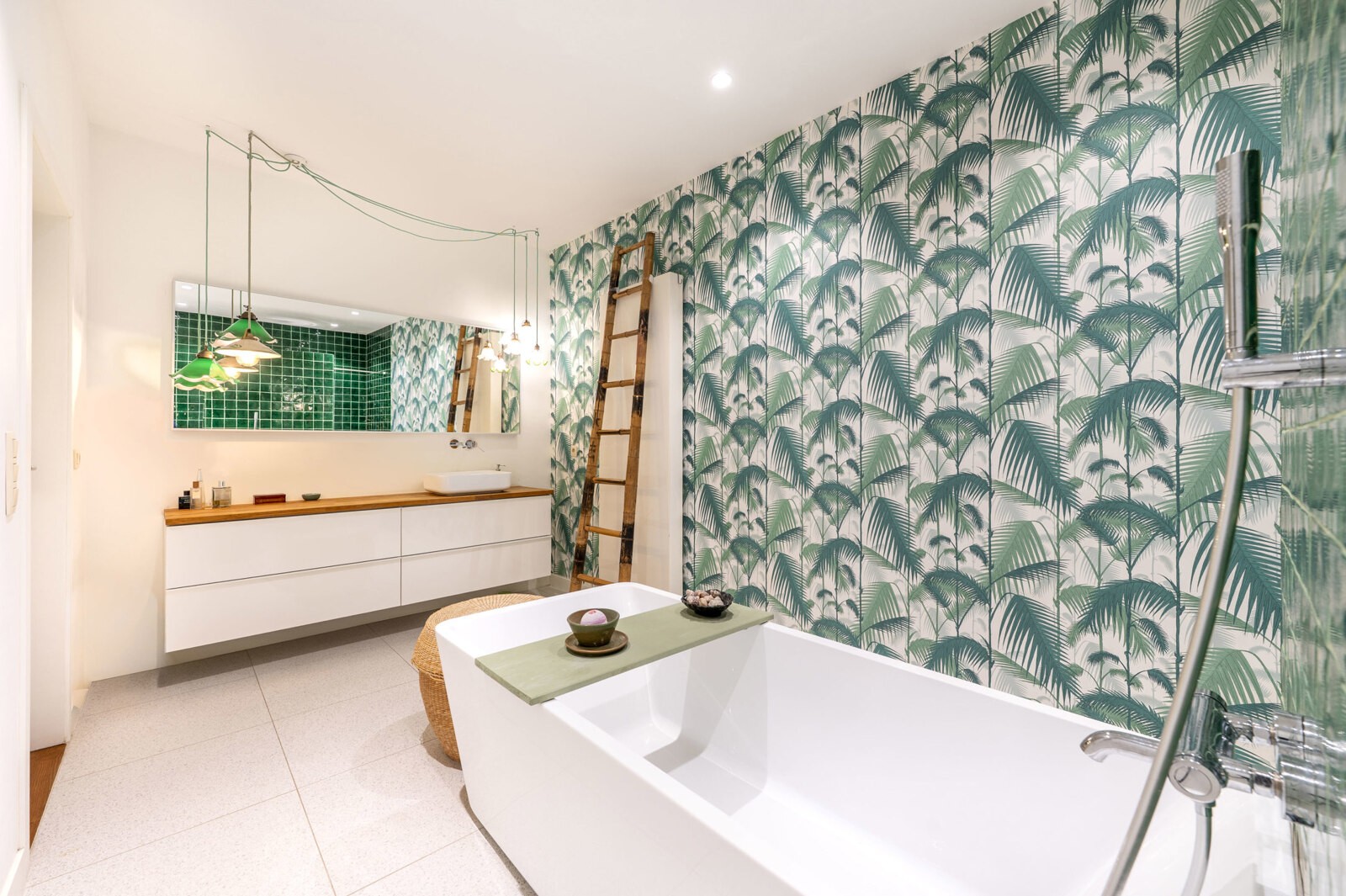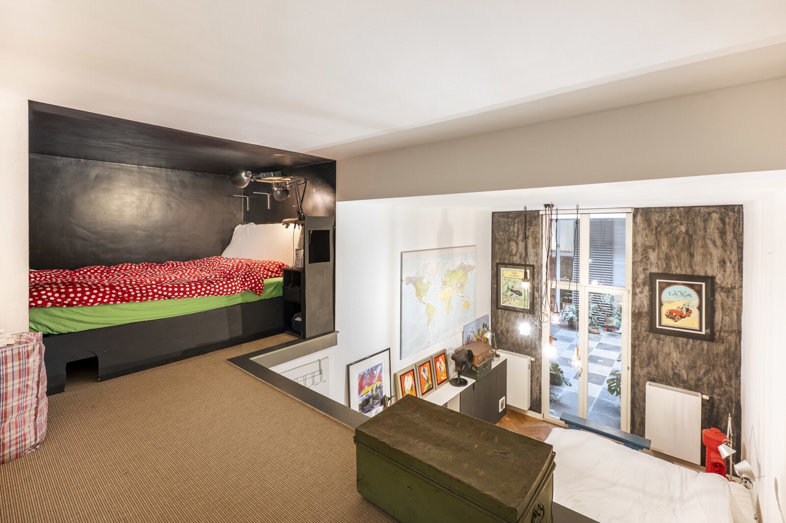 Via de nachthal komt u bij de tweede en derde slaapkamer, beide met een mezzanine en uitzicht op de binnenkoer. Voorts een tweede badkamer met douche en lavabo, een aparte wc met lavabo en een wasruimte met aansluiting voor de wasmachine.
